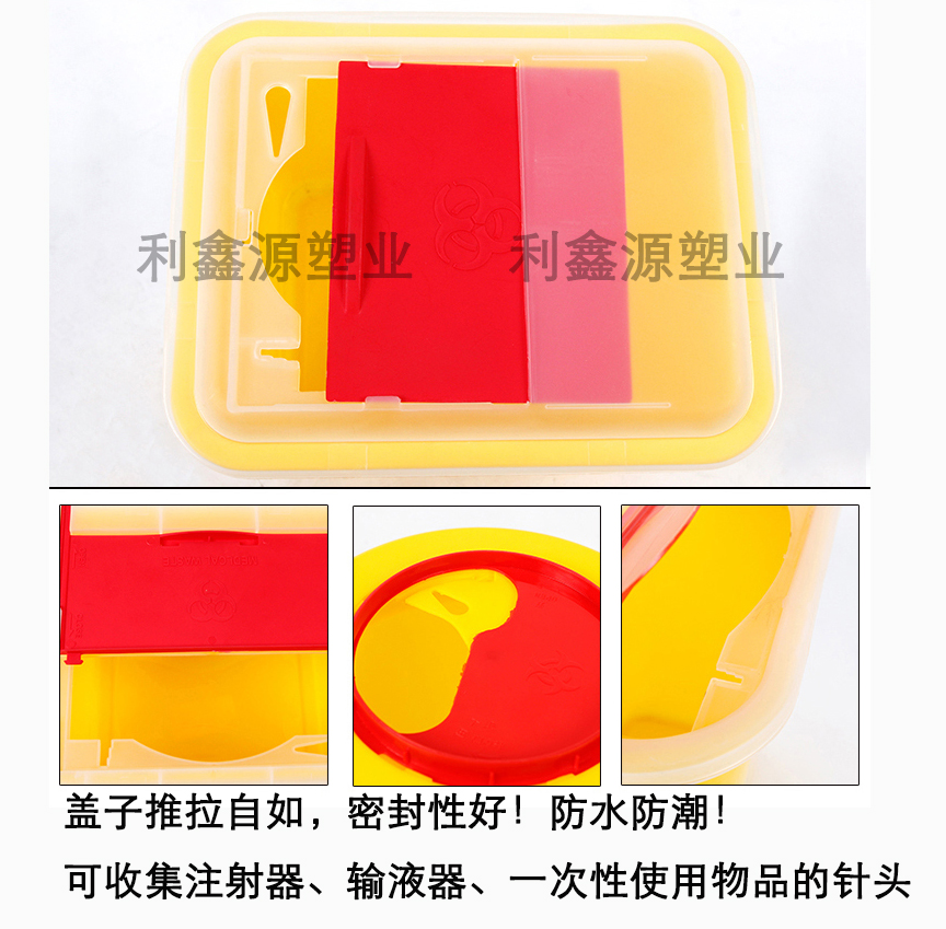 1、利器盒整體為硬制材料制成,密封,以保證利器盒在正常使用的情況下,盒內(nèi)盛裝的銳利器具不撒漏,利器盒一旦被封口,則無(wú)法在不破壞的情況下被再次打開;