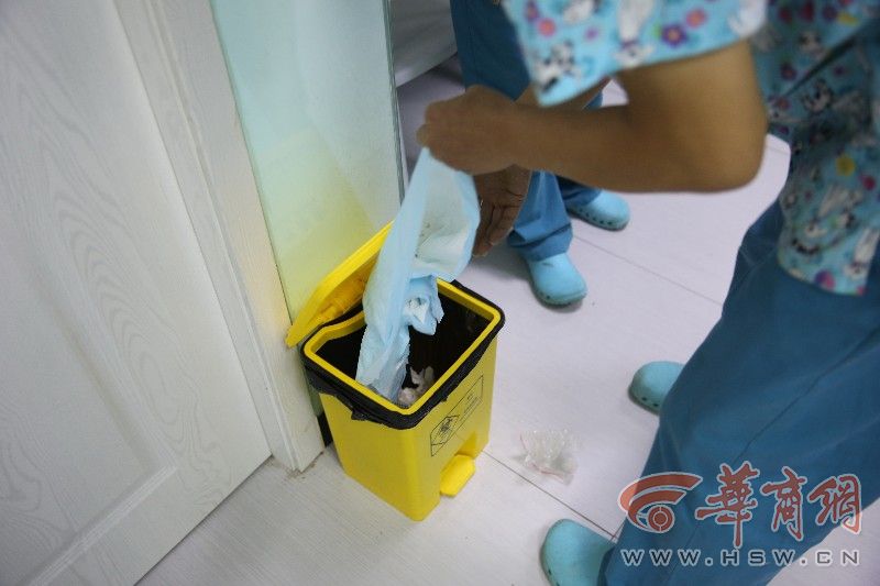 執(zhí)法人員看到該醫(yī)院有把黑色生活垃圾袋套在黃色醫(yī)療廢棄物垃圾桶上的情況,當(dāng)場指出,醫(yī)療廢棄物、專用塑料袋不能和生活垃圾桶、生活垃圾袋混用,必須??顚S谩?jù)負(fù)責(zé)人介紹,醫(yī)院里的醫(yī)療垃圾并不多,西安市醫(yī)療廢棄物處理中心的垃圾車會隔一兩個月收一次,進(jìn)行專門處置。