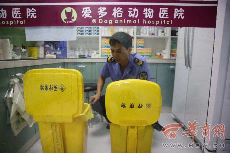 8月14日上午,碑林區(qū)動物衛(wèi)生監(jiān)督所便來到景觀路上進(jìn)行調(diào)查,基本確認(rèn)被丟棄的動物醫(yī)療垃圾來自愛多格動物醫(yī)院,來到醫(yī)院進(jìn)行調(diào)查取證,執(zhí)法人員對多位工作人員及動物醫(yī)院負(fù)責(zé)人問訊。