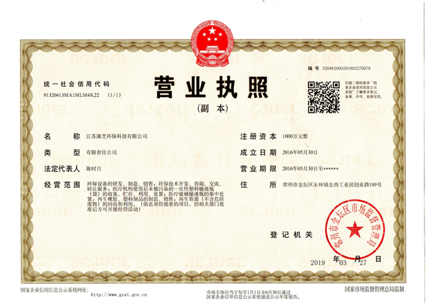 常州市環(huán)保局目前已批準(zhǔn)我公司《江蘇康芝環(huán)保有限公司年處理3000噸一次性醫(yī)用塑料輸液瓶(袋),年產(chǎn)30萬(wàn)只垃圾桶項(xiàng)目噪聲、固體廢物污染防治設(shè)施驗(yàn)收申請(qǐng)》。